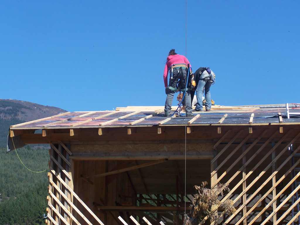 Un bon équipement est essentiel à la réussite de cette étape : grue, monte-charge, cloueur pneumatique, matériel de mise en sécurité et… balai !